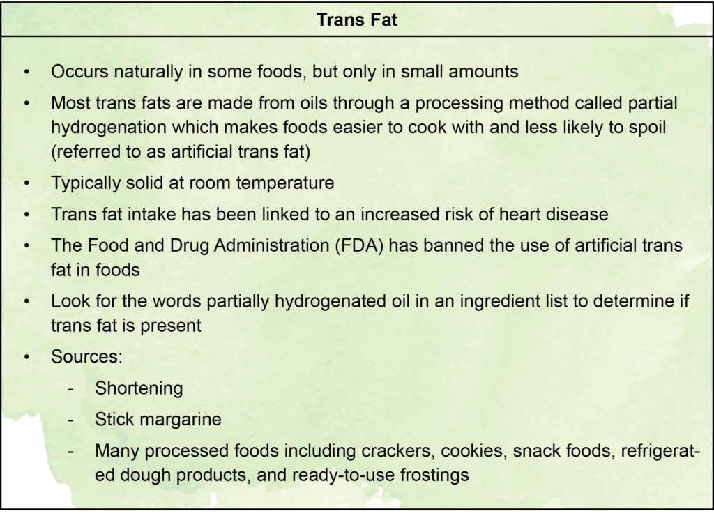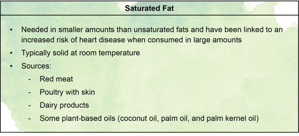 • Saturated and trans fats