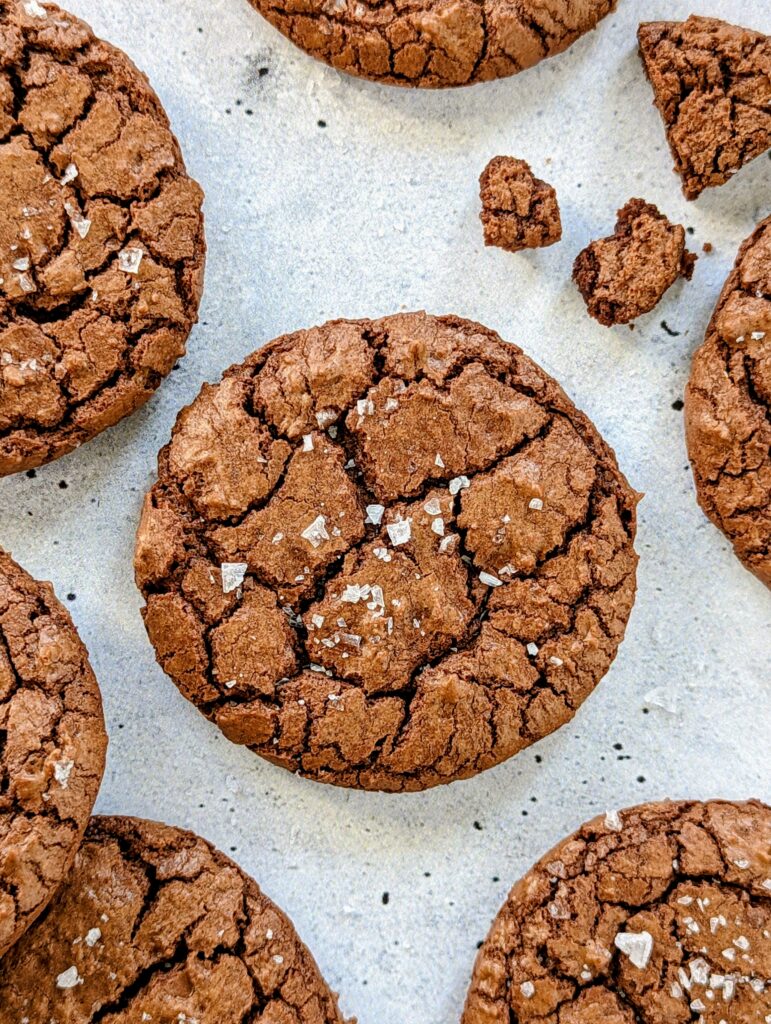 Crackly tops, crisp edges, and a soft, fudgy interior — these are the perfect cookie-brownie mashup! The added espresso powder makes them intensely chocolatey. I like to sprinkle flaky sea salt on the cookies before putting them in the oven to really enhance the chocolate flavor. I’m also a huge fan of the sweet-salty combo. For brownie-lovers who crave the crispy edges, I highly recommend these cookies!