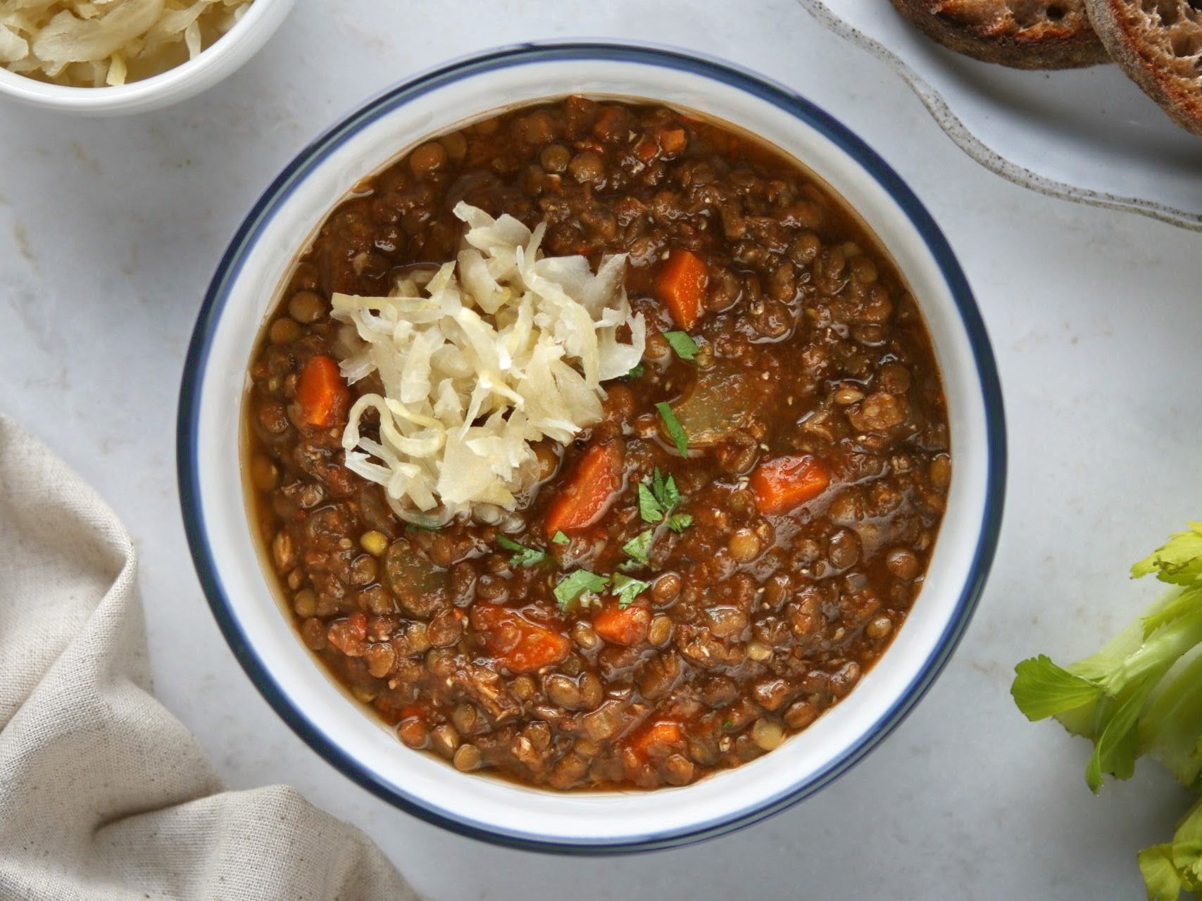 So simple, yet so delicious. This one-pot meal uses few ingredients, but is full of flavor. The soup comes together quickly, requires minimal cleanup, and is great as leftovers. Top with sauerkraut to make it extra nutritious and serve with crusty bread (sourdough is my favorite). So good!